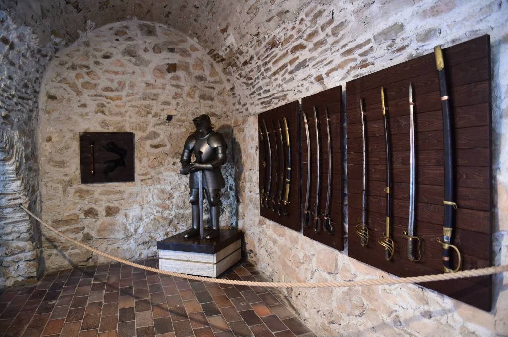 The castle also boasts a large weapon collection ranging from handheld weapons to cannons and also has some suits of armour. Some of you might be wondering if it had a dungeon and I’m sure it did. There is a room full of torture devices that were used to punish people. Having seen some of those devices up close, I’m really glad to live in a world that no longer uses such methods. The castle also hosts reenactments of swordfights and a little of what life was like back in the day when the castle was functional. Depending on when you go, you can also find little shops set up around the grounds and in the ruins. There was a man there a number of years ago who made his own knives, daggers, and swords. Yes, I bought myself a medieval sword. I couldn’t help myself. I’d love to go back and buy another one from him, but perhaps a musketeer sword next time. I think I need to dedicate one room to all my weird souvenirs over the years. Time to find a bigger place!